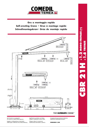 Self erect crane hire with sizing from 21m up to 40m and all types of accessories.